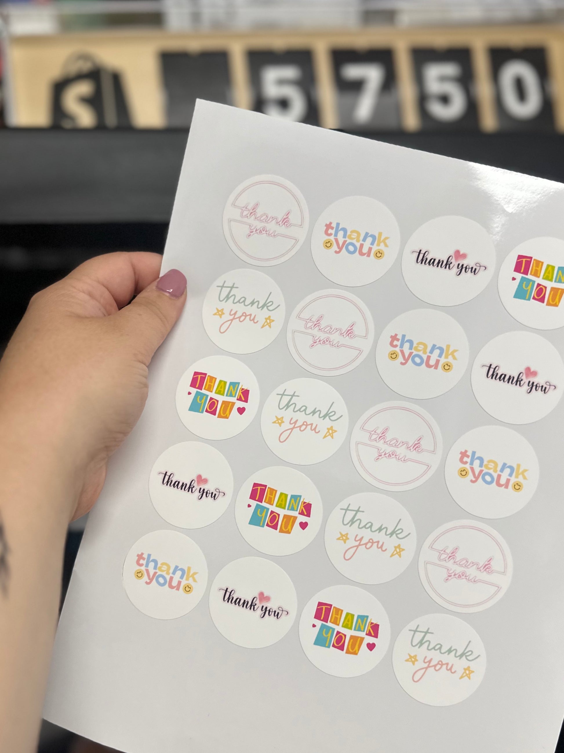 By purchasing the stickers, you will get 20– 1.5” assorted stickers — 4 of each
